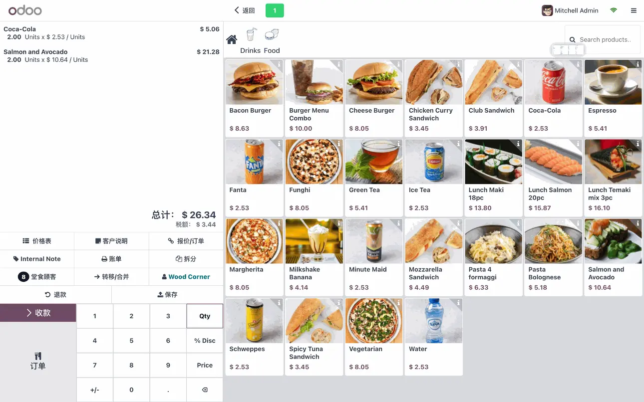 Odoo 销售点带来完美解决方案,为任何类型的餐厅(从快餐店到酒吧)提供流畅服务。