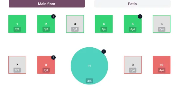 高效团队合作。实时楼层平面图使您的员工及时查看哪些桌台需要帮助,确保客户满意并快速翻台。