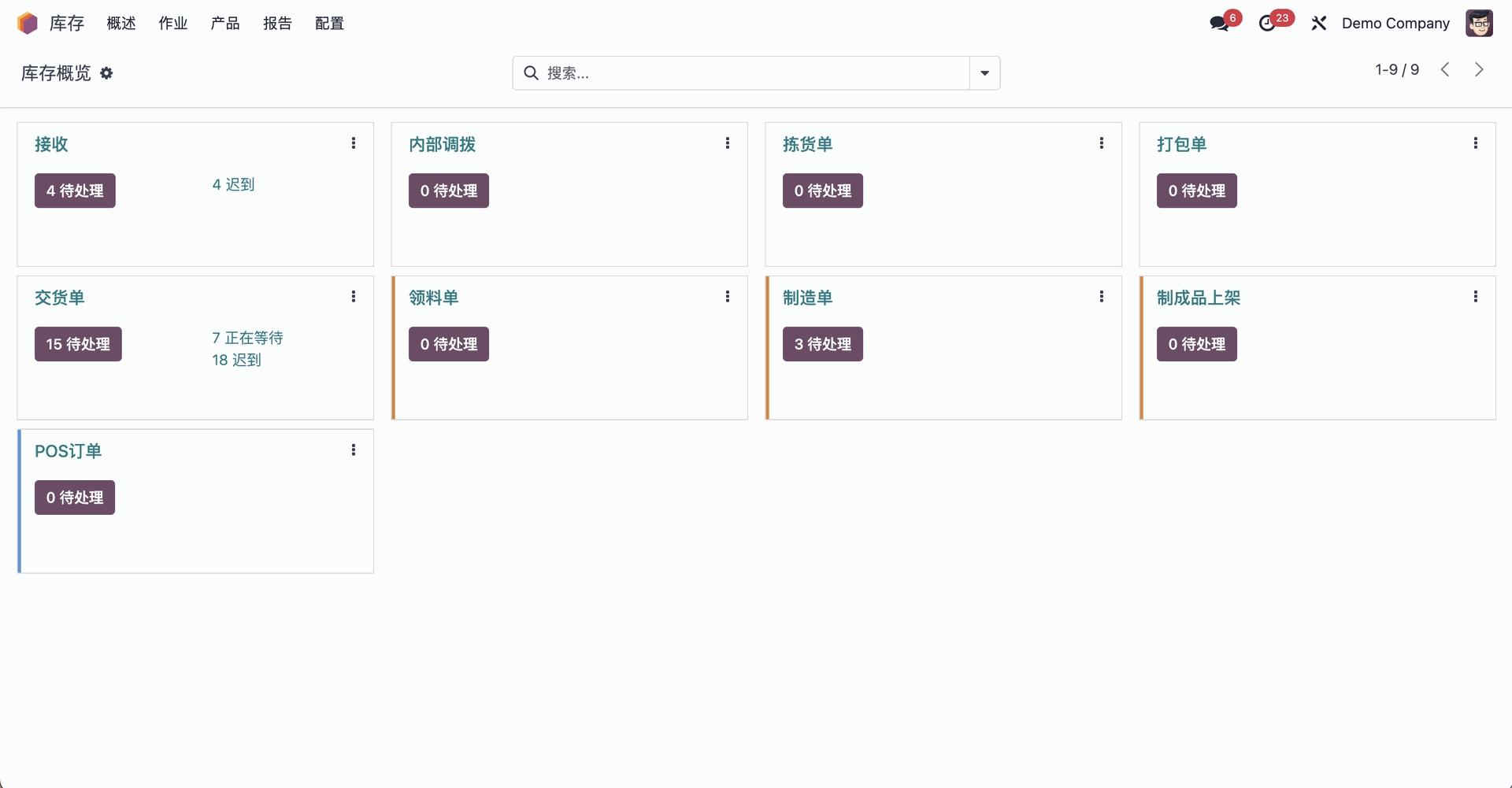实时库存管理,包括所有功能:序列号、批次、包装、预订策略、周期计数、关键绩效指标等...