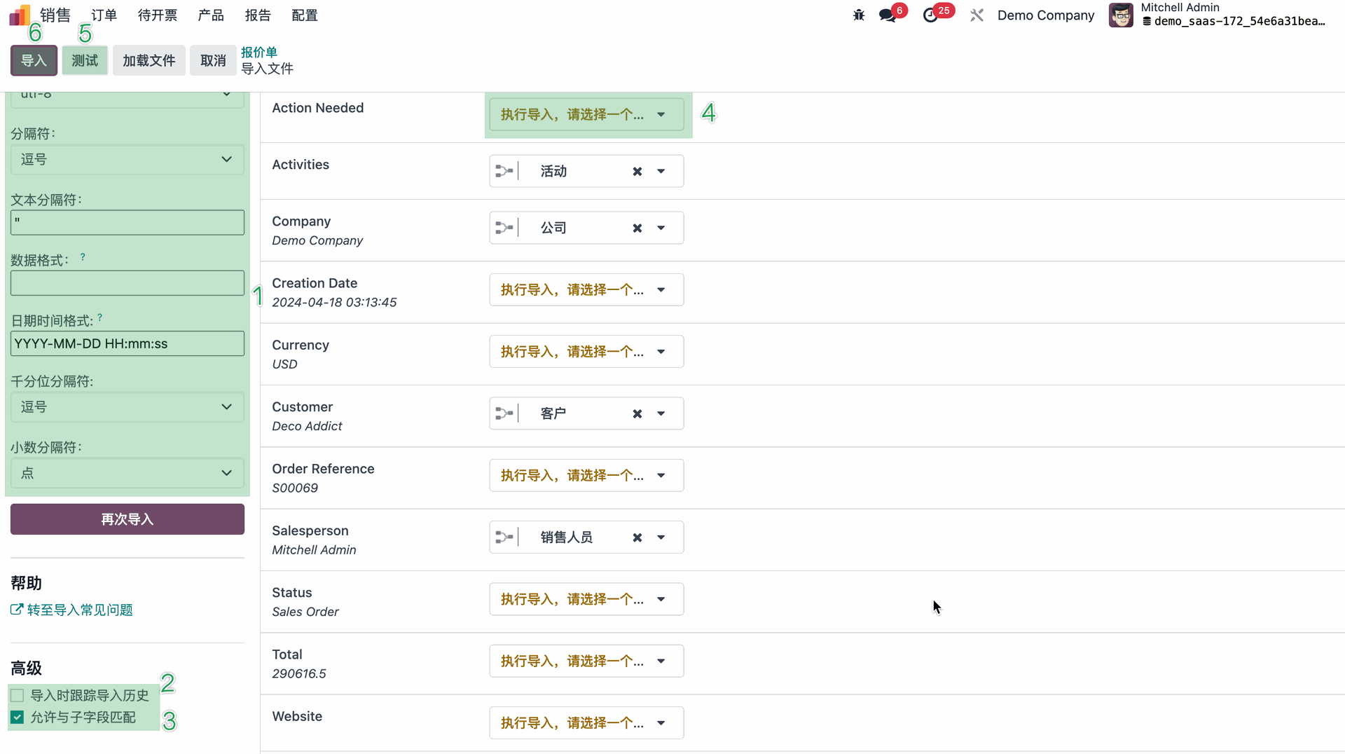 4. 匹配字段:当导入文件的标题与系统中字段名称一致时,系统将会自动识别。当名称不匹配时,可通过下拉人工选择要匹配的导入字段