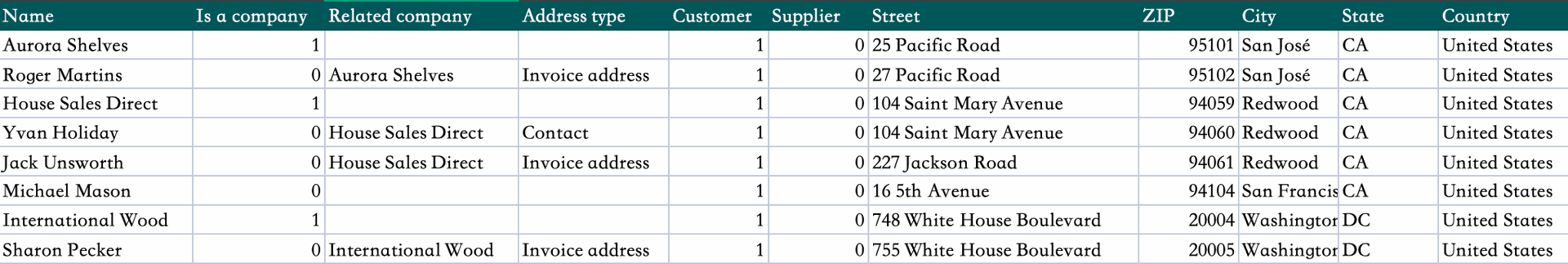 某些字段的定义与另一个对象存在关系。例如:联系人中所在的国家/地区对应着国家/地区对象的某一条记录。导入此类关联字段,Odoo提供了三种方式: