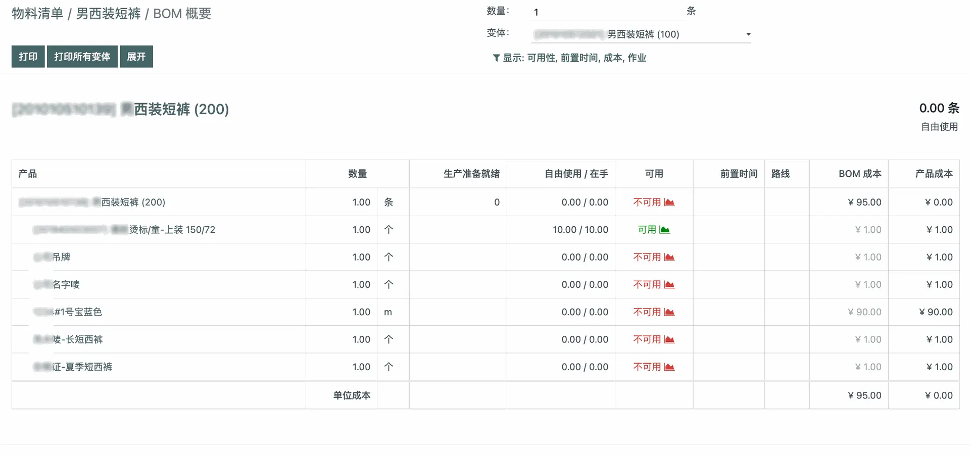 在物料清单(BOM) 维护好成品和物料的关系、产品标准工序后,系统自动计算产品成本。